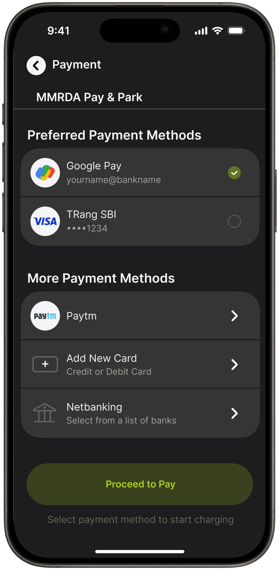 Store payment methods securely and complete transactions for both parking and charging in a single tap. Eliminate checkout friction so you can focus on the road ahead